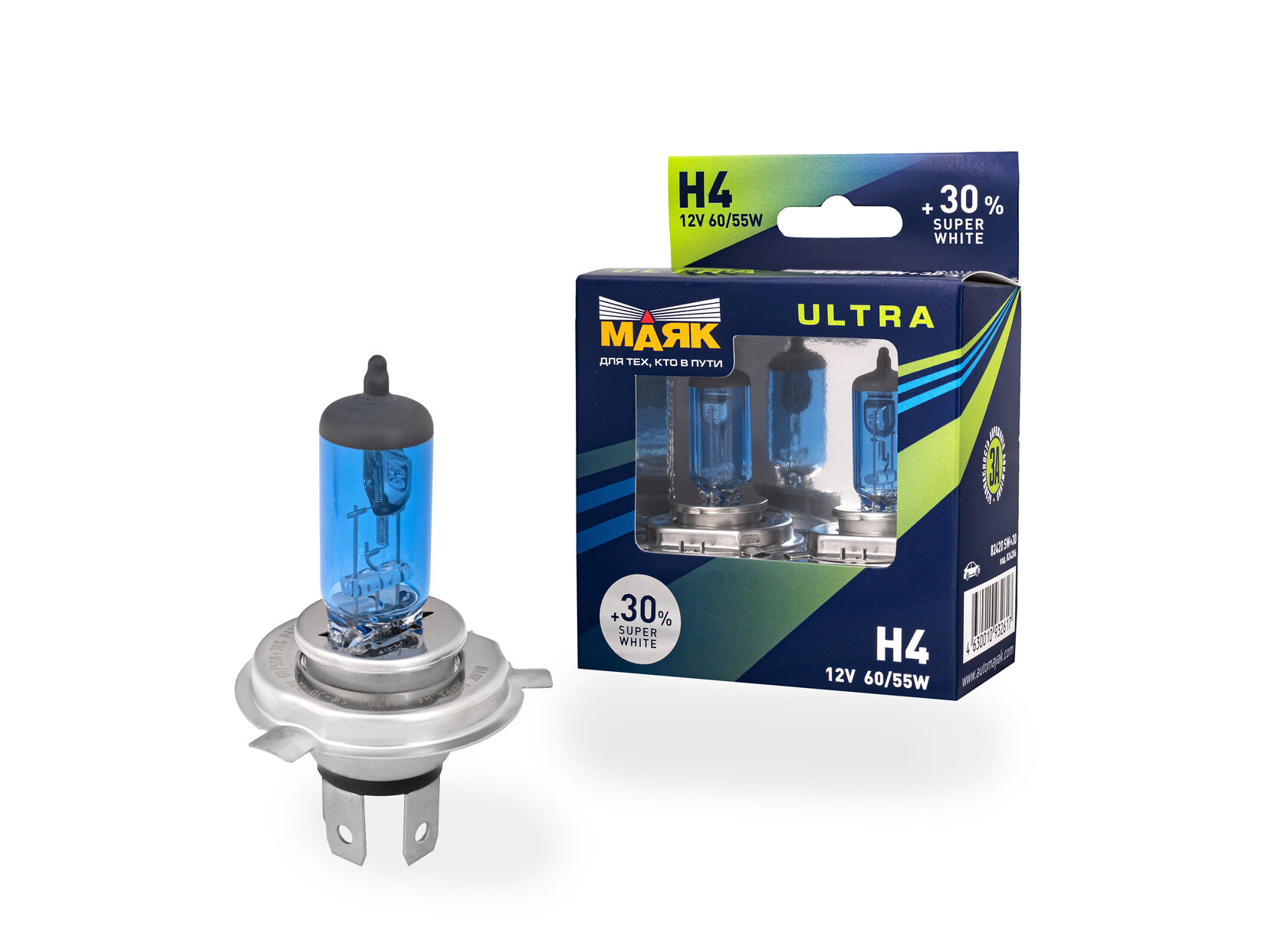 Галогенная лампа Ultra Super White +30% H4, P43T